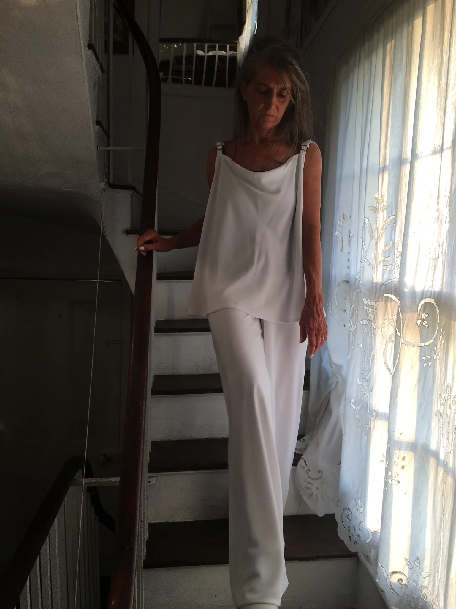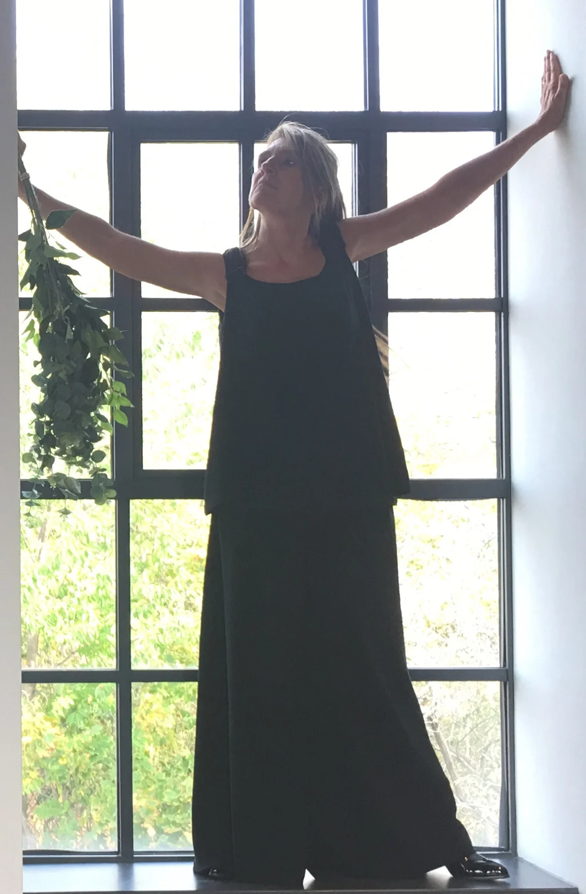 Polyester with its durability, longevity and recyclability matched my design requirements for slow fashion. My concerns over polyester were overridden by the fact that made-to-order capsule garments don’t produce excess unsold stock and are classics for life.